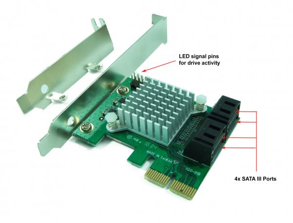 • 6Gbps SATA III Internal 4 Ports PCIe Gen2 x2 Lane Host Adapter