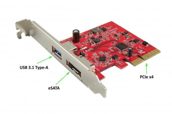 One 10Gbps USB3.1 port and one 6Gbps External eSATA III port PCI Express 3.0 x4 Lane Host Adapter