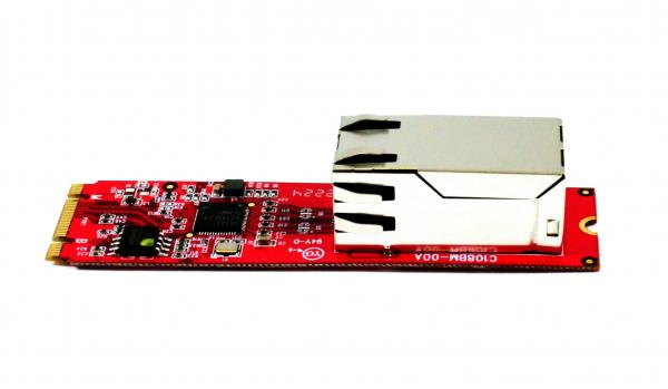 Compact M.2 PCIe 2.5 GbE Ethernet module with RJ-45 connector on board.