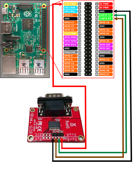 Connect Raspberry Pi TX / RX on GPIO header to a DB9M RS232 Serial port